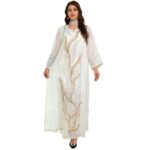 A radiant and refined kaftan adorned with shimmering embroidery — ideal for Eid, weddings, and joyful nights under the stars ✨🕊️