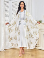 Graceful and radiant, this golden floral jalabiya set in flowing chiffon brings a modern elegance to traditional wear – perfect for weddings, Eid, or special gatherings ✨🌸